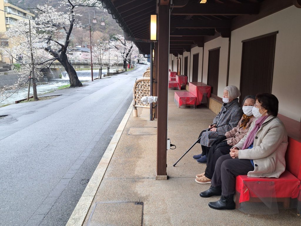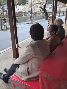 萬国屋様の風情あるベンチをお借りして女子会中🌸🌸