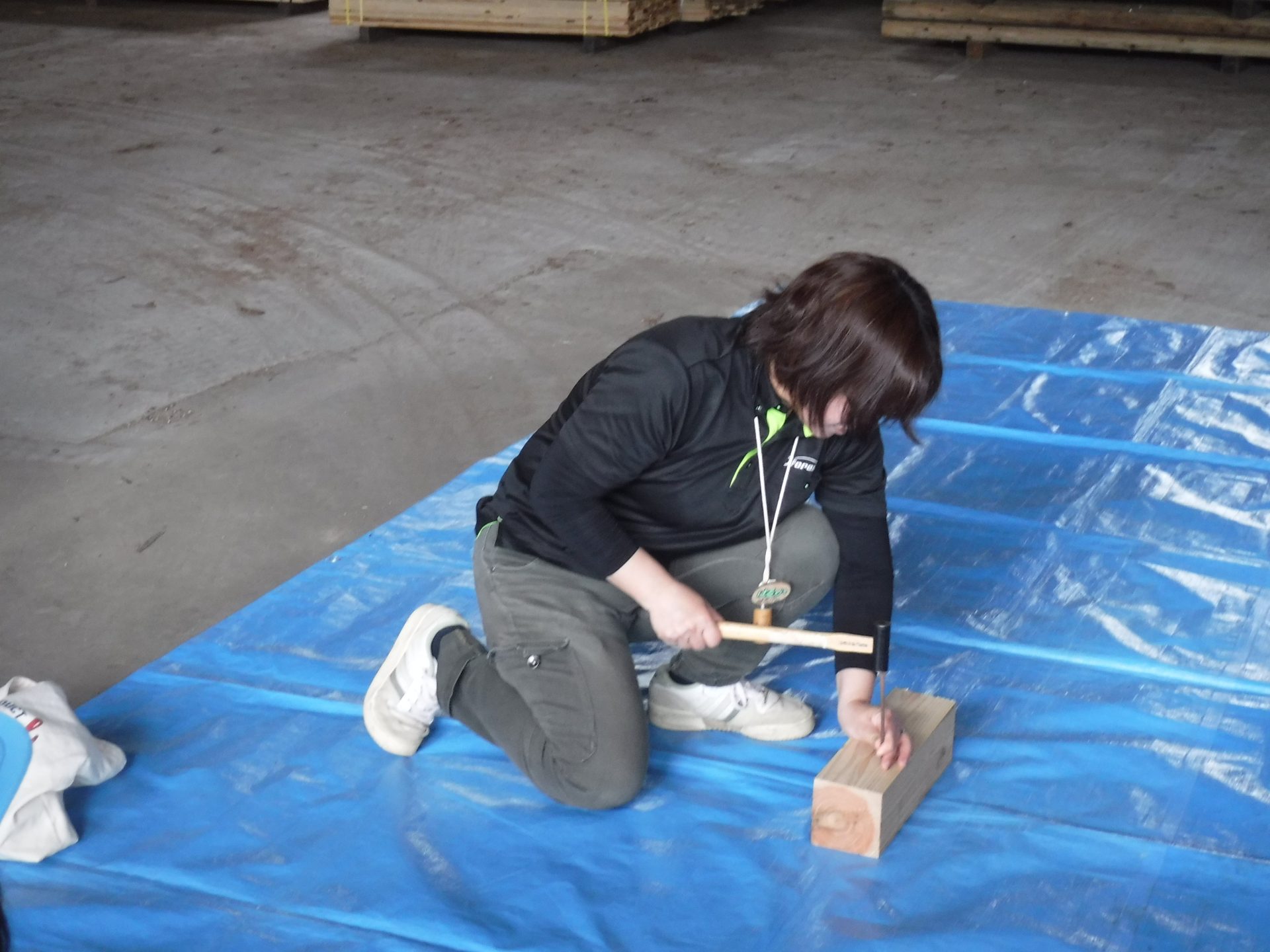 いよいよ、釘打ち体験の時間です!まずは、先生に・釘の持ち方・金槌の使いかた・釘打ちの順で、教えてもらいました。