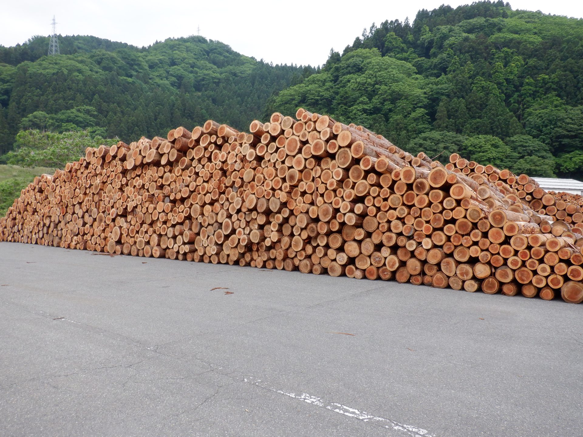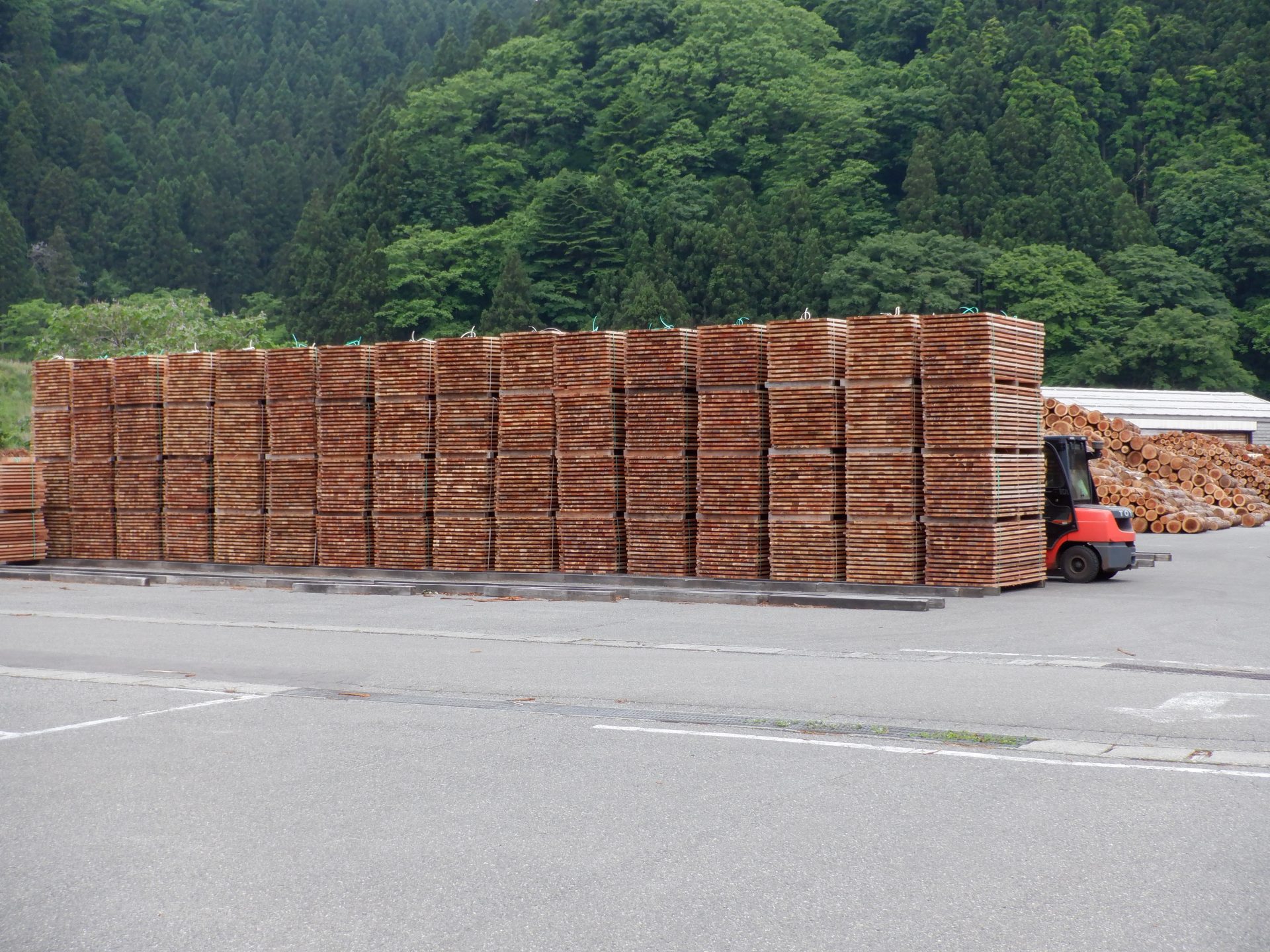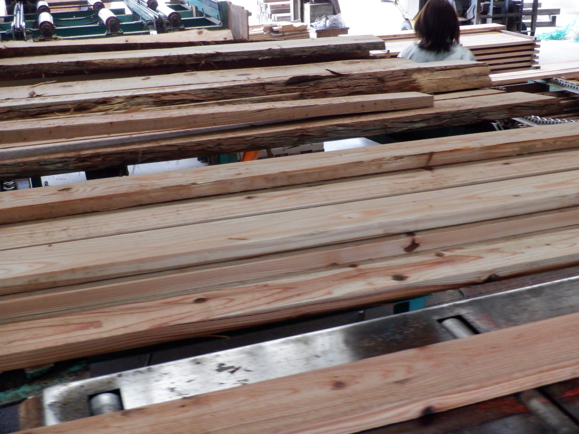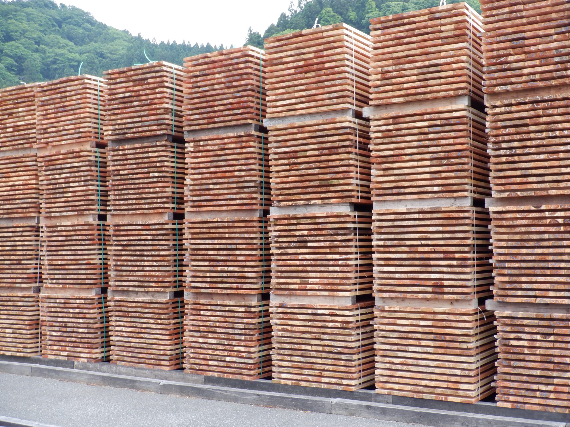 - 加工されたあつみ杉がならんでいます