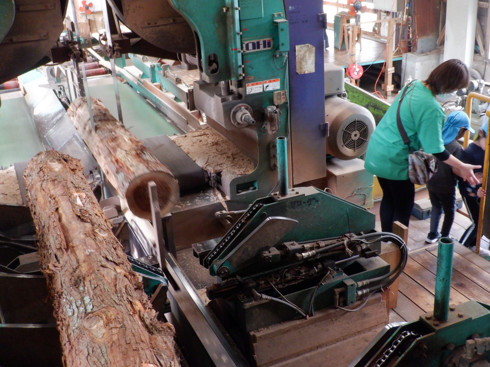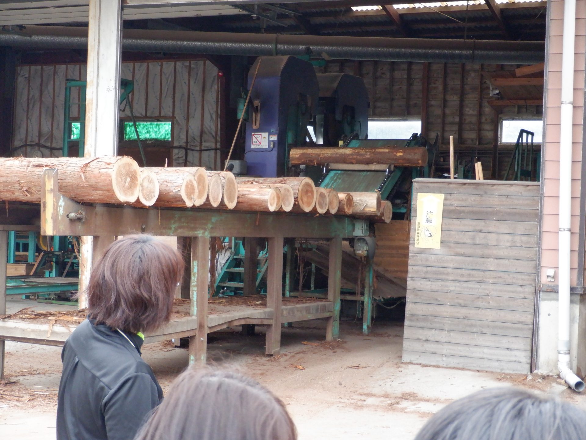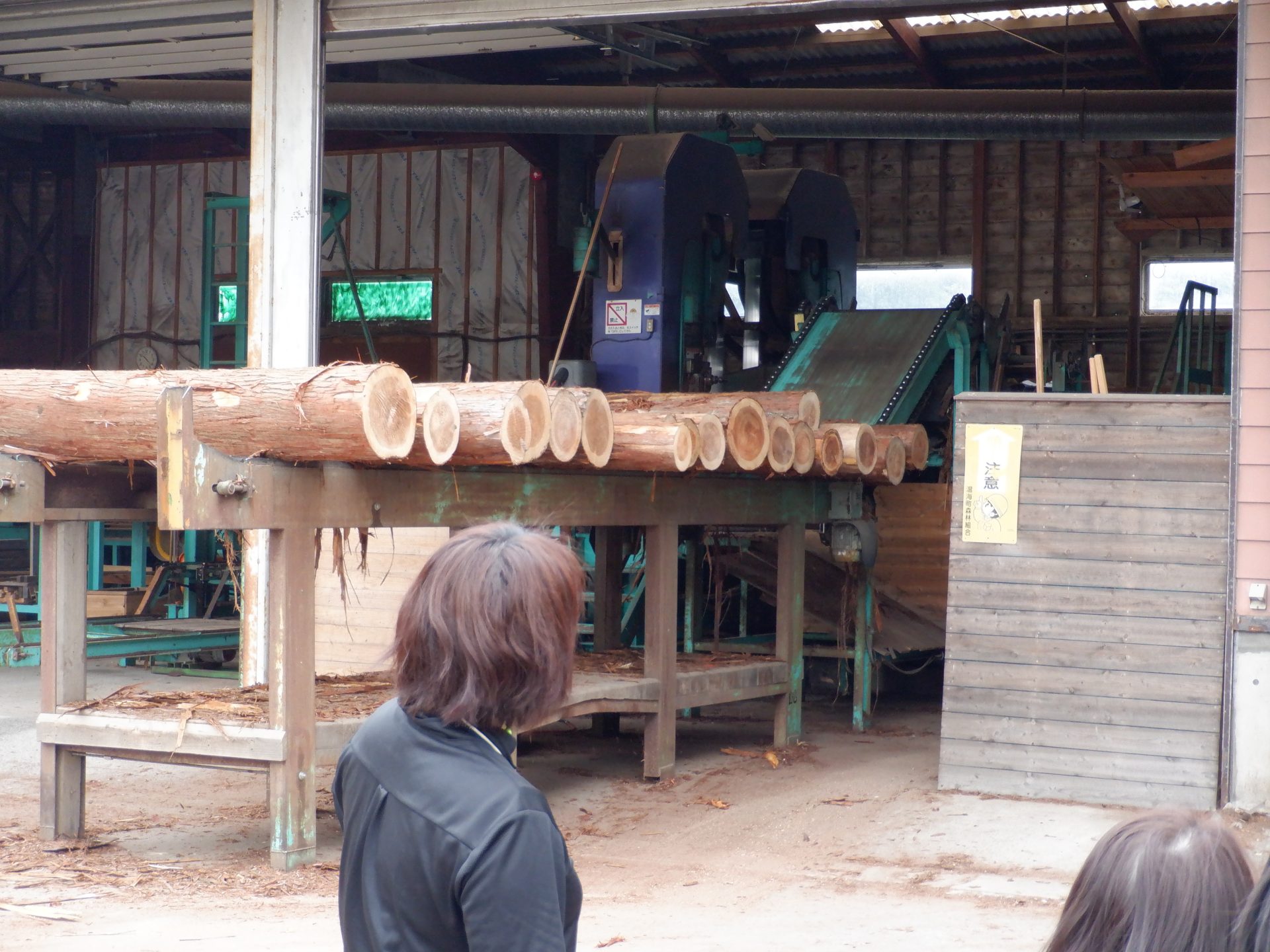 次は、杉を切って加工する機械を見ました。