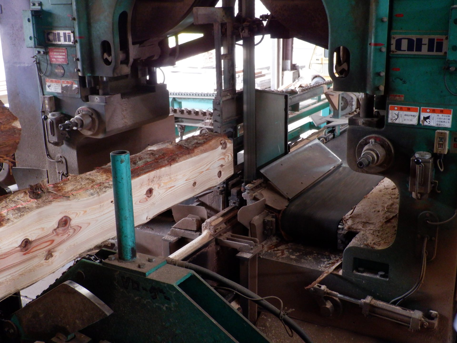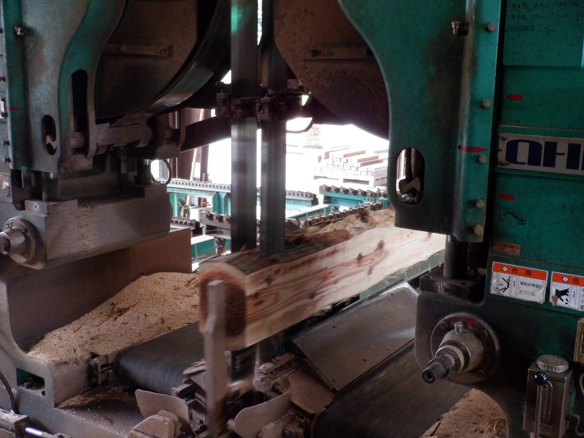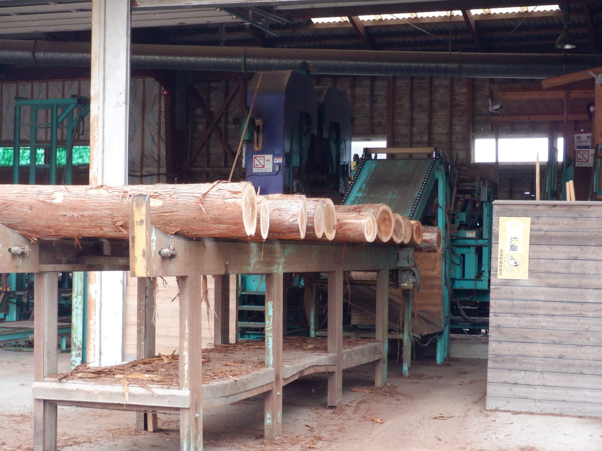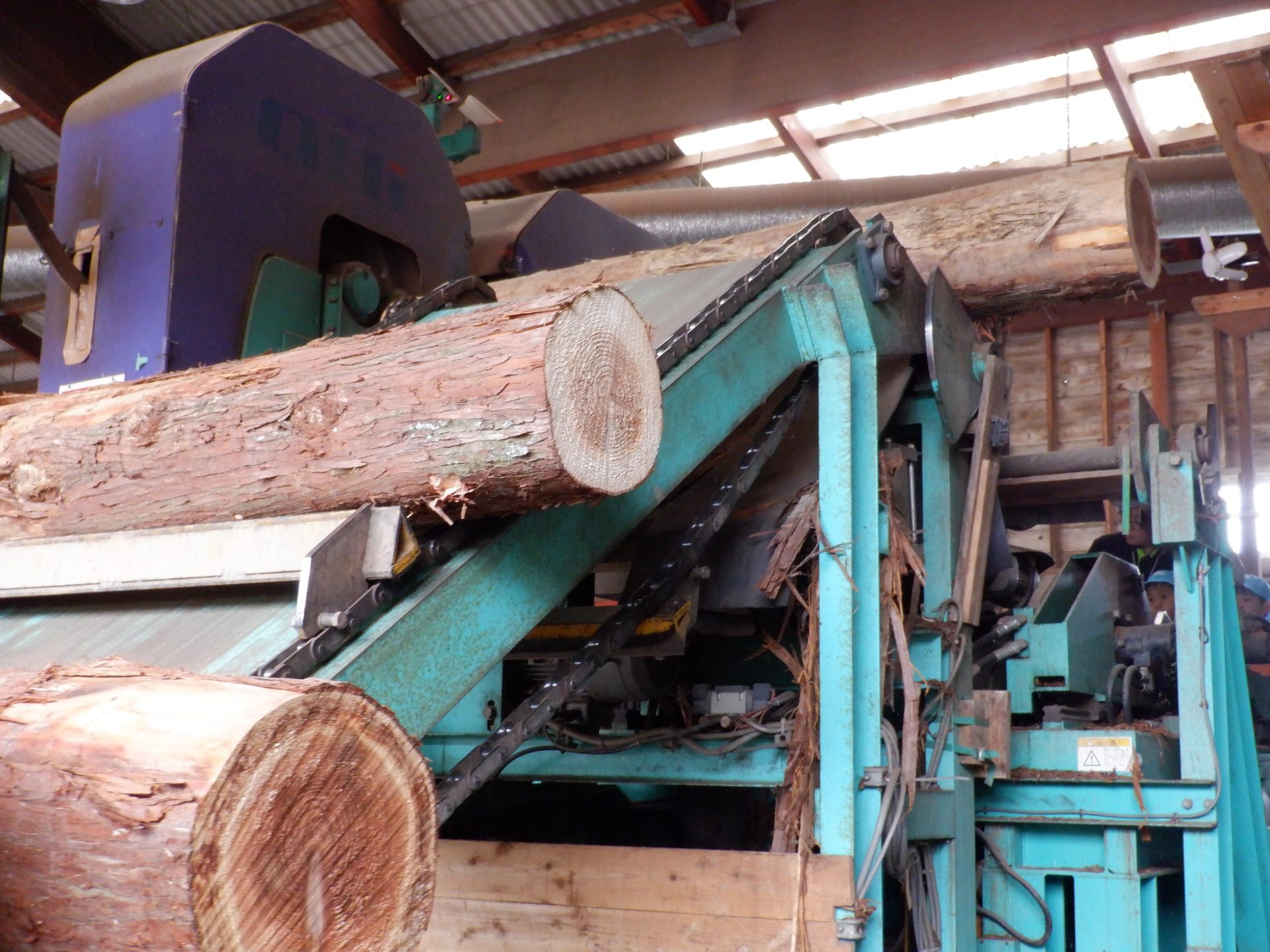 次は、杉を切って加工する機械を見ました。