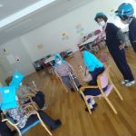 地震発生➡大津波警報発令➡二階ホールへ避難と言う流れで実施しました。