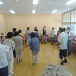 湯の里の本間とし子さんを講師にお招きし、温海音頭と花笠踊りの手ほどきを受けて暑さも忘れ、参加者全員で楽しみながら踊りました。